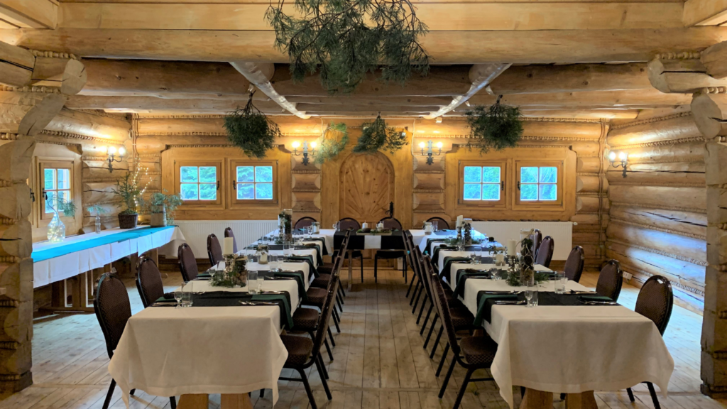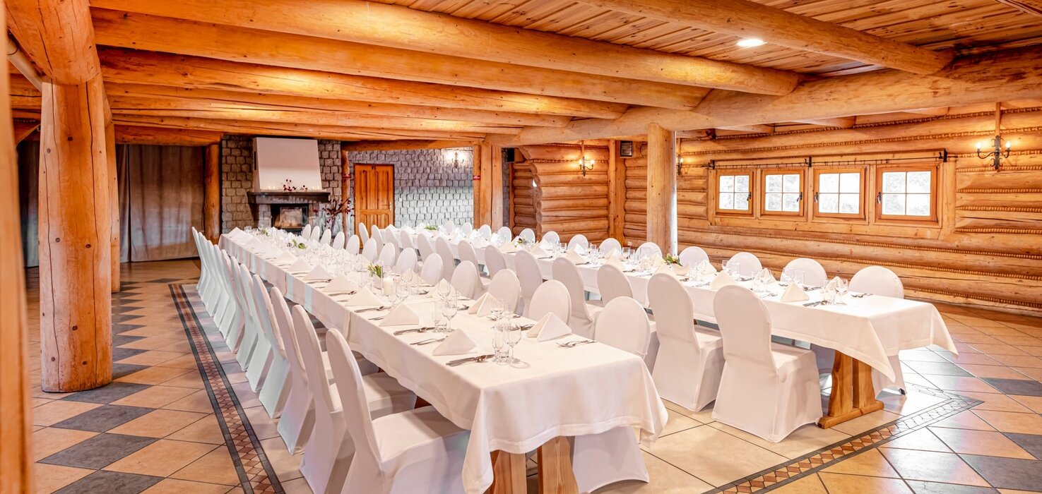 First Communion party at a highlander cottage? Yes, you can to this in Mazovia! Hotel Panorama has not one but two genuine highlander cottages, located in the hotel garden. The cottages were built by highlanders from raw wood and finished with distinctive Zakopane-style elements. Decorative shutters, door fittings, embroidered cafe curtains, colourful table covers, the warm colour of wooden walls and floor finishing with natural stone conjure up the idyllic atmosphere of the Podhale region. A First Communion party held in such an original venue will surely be remembered by guests for a long time.