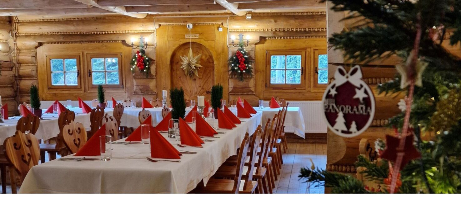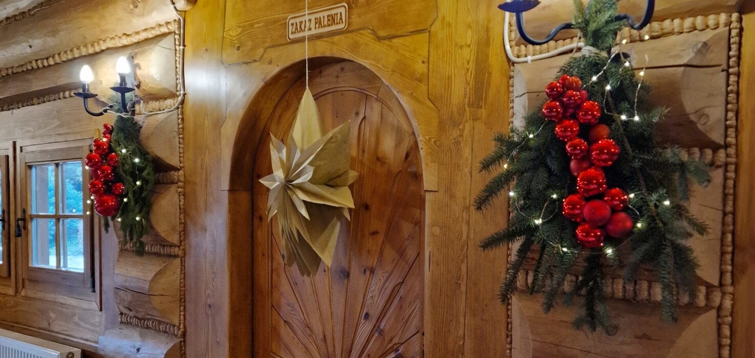 Wyjątkową atmosferę – drewniane wnętrza, regionalne dekoracje i świąteczne ozdoby tworzą przytulny, świąteczny klimat.