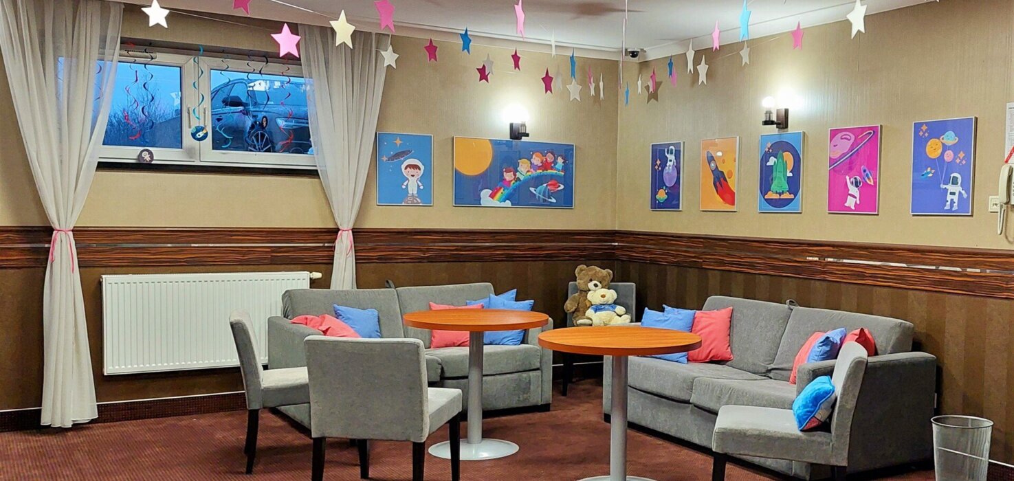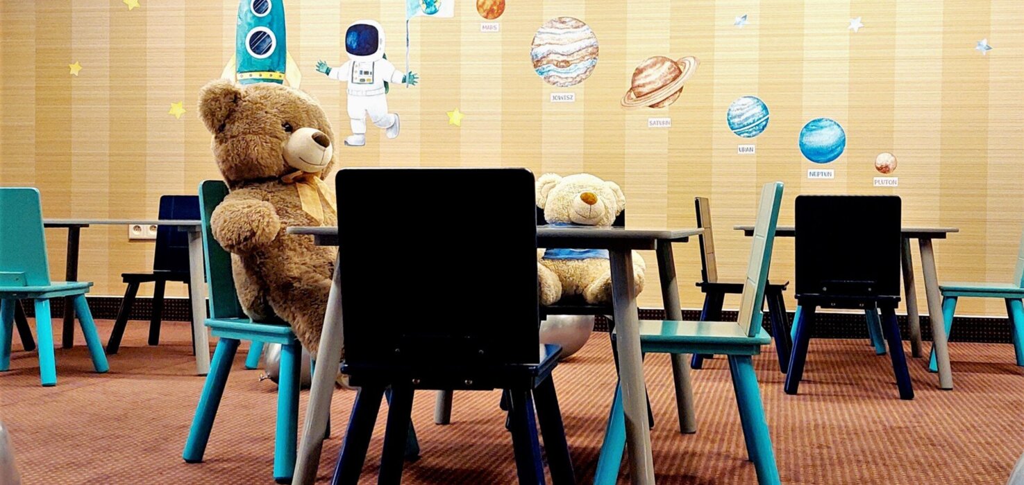 Siūlome 4 sales: kosminę salę su žaidimų aikštele ir kamuoliukų baseinu, gimtadienių salę, dirbtuvių salę ir multimedijos salę su projektuotu interaktyviems žaidimams ir pramogoms.